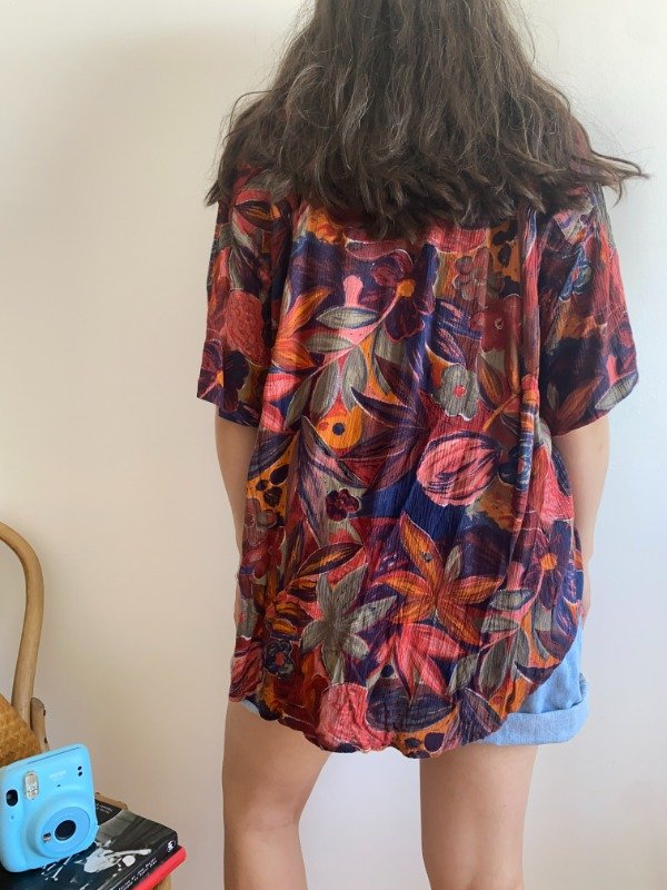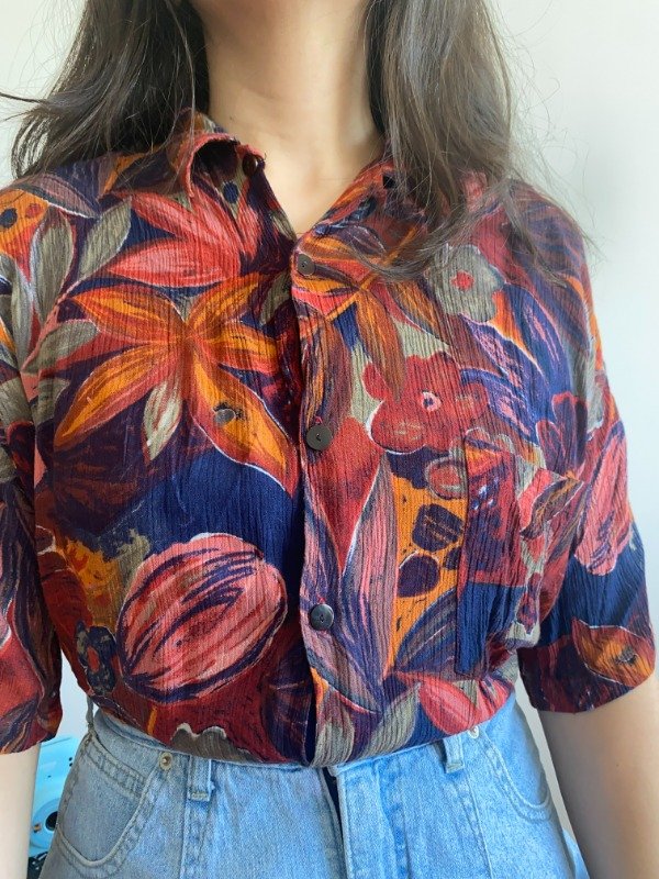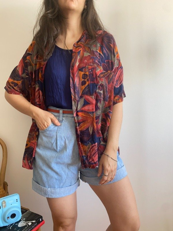 Camisa de origen balines. El género es creppe con textura tipo plisada. Botones funcionales en el frente. Bolsillo. Liviana y única.