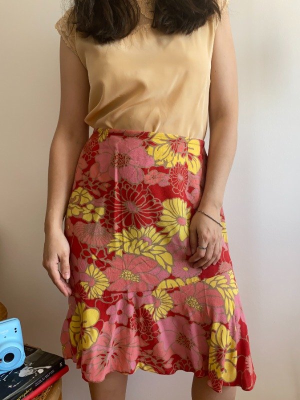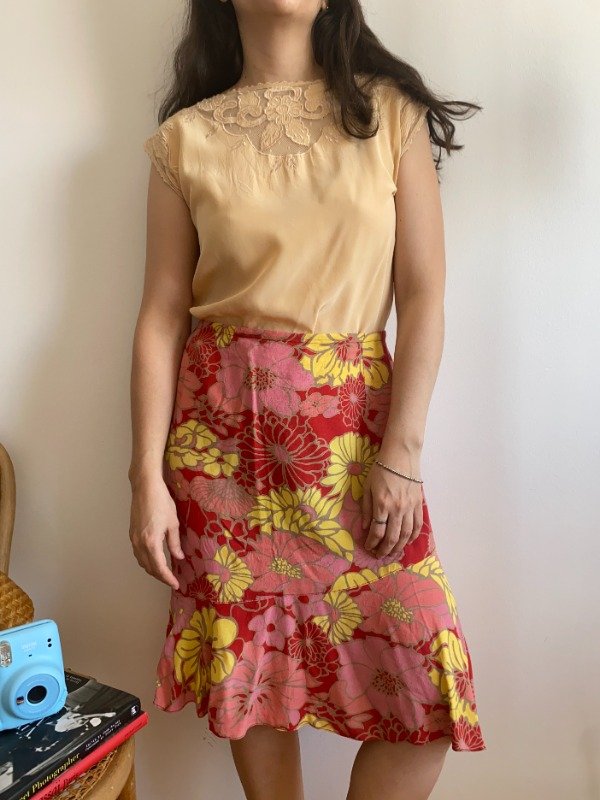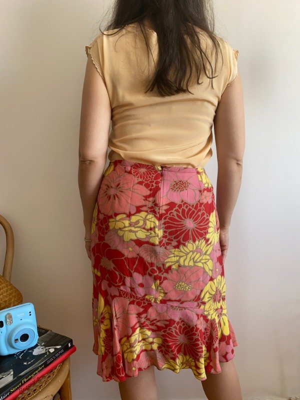 Marca Portsaid. De nuestra historia reciente. El género es creppe, suave. Tiene un cierre para abrochar por detrás. Buen vuelo por abajo, permitiendo un lindo movimiento.