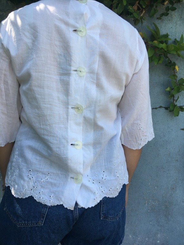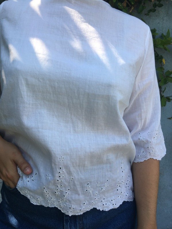 Esta blusa se llevó mi corazón. Está confeccionada a mano! Tiene botones grandes por detrás. La tela es algodón. Y el detalle que no falla: bordados muy sutiles en los ribetes y en las mangas. Es muy delicada!