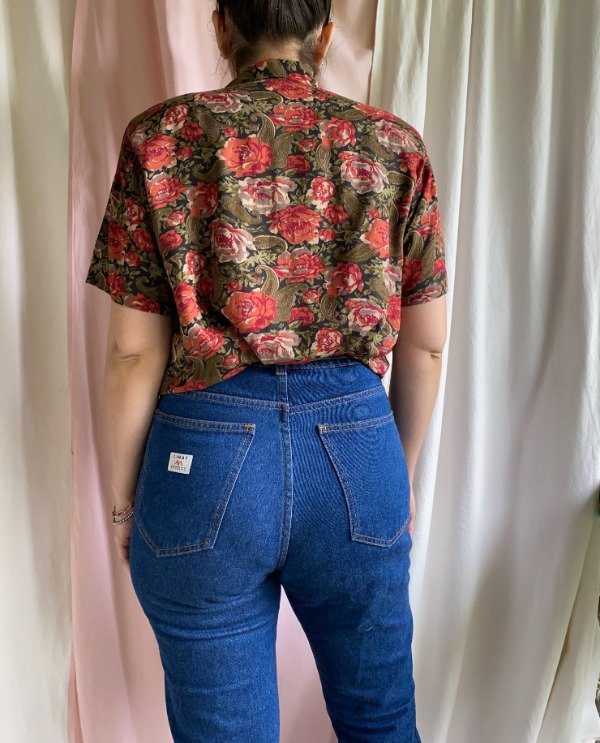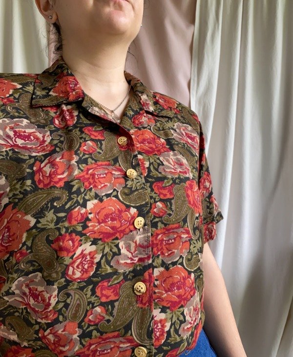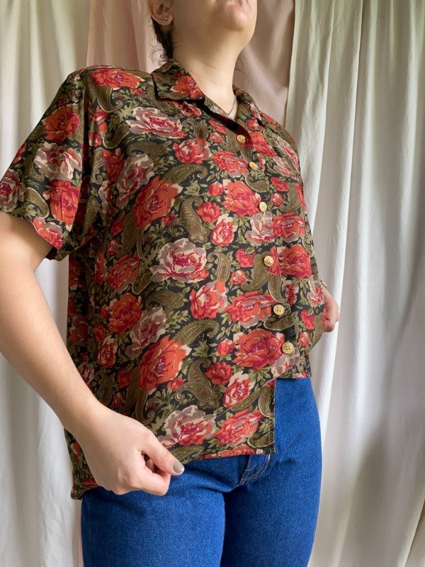 Confeccionada a mano por modista. Hermosa camisa de algodón estampada con flores y hojas. Viene con hombreras que pueden retirarse. Hermosa caída. Muy linda.