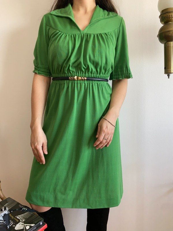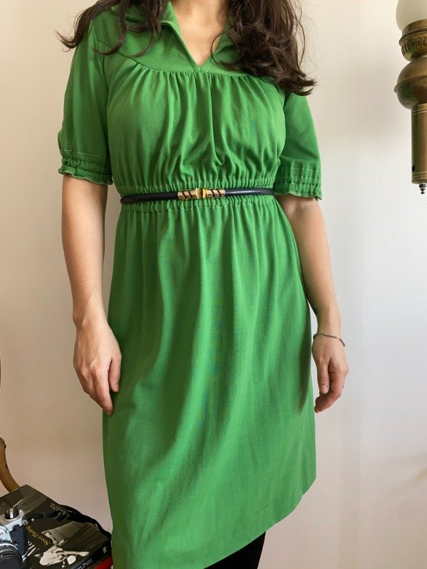 Década del '70. El género es jersey, liviano. Está forrado por dentro. Elástico en la cintura. Solapitas. Hombreras que pueden retirarse. Precioso.