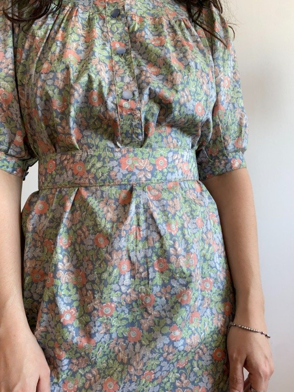 El mas cotagge core. Una vida en la campiña. De algodón, liviano, el de antes. Mangas princesa. Frunces en el pecho. Botones funcionales en el frente. Viene con su cinto original para ajustarlo en la cintura. Hermoso estampado de florcitas. Un primor total.